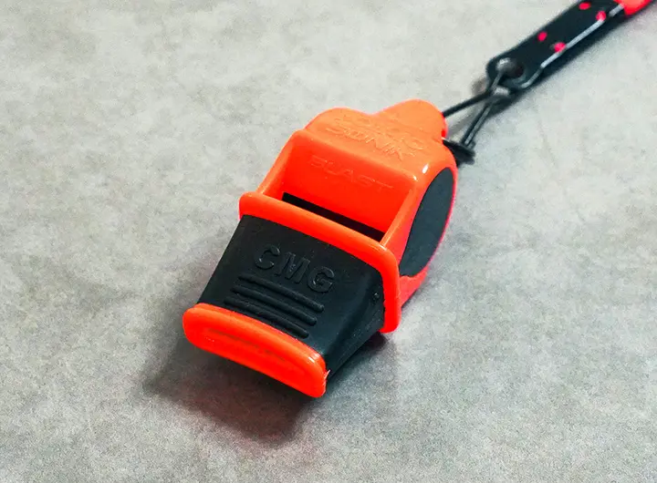 渓流釣りでNET-O電子ホイッスルが水没したり故障した場合を想定し、FOX40 ソニックブラストも携帯しています。肺活量と吹き方にもよりますが、思いっきり吹くと、高音で大きな音が響きます。