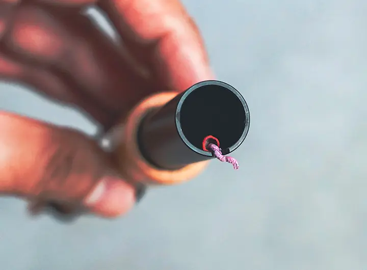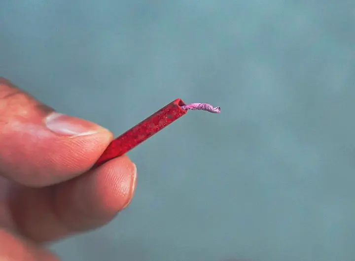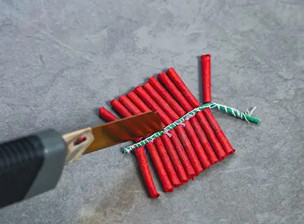 使い方は、爆竹の束をカッターで一本ずつバラします。銃身のスリットに爆竹をセットし火をつけ、爆竹を銃身に滑り落とします。熊おどすやつを空に向け、爆竹が破裂するのを待ちます。爆竹を素手で持って火をつけるよりも安全です。