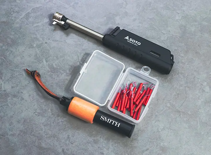 導火線に火をつけるときは、先端が伸びるライターだと安心です。SOTO ST-487が便利です。火力、対風性能、安全設計、利便性、アウトドア最強ライター(ガストーチ)です。