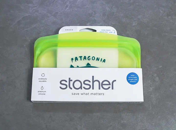 スタッシャーはシリコン製で耐久性と防水性のある収納ケースです。食材や小物類の収納に使います。洗えば何度でも再利用できます。密閉性もあり、ドレッシングやソースの液だれの心配もありません。電子レンジや湯せん、冷凍冷蔵にも対応しています。耐熱温度は250℃、耐冷温度は-18℃です。