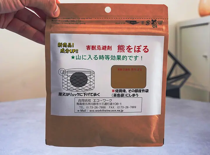 携帯用の熊をぼるは一袋3,000円台とやや高額ですが、おすすめの熊対策グッズです。匂いの効果は2〜3ヶ月持つため、1シーズンに1〜2つは必要です。熊と遭遇してからは手遅れなので、遭遇しないように熊をぼるで熊よけ対策を。