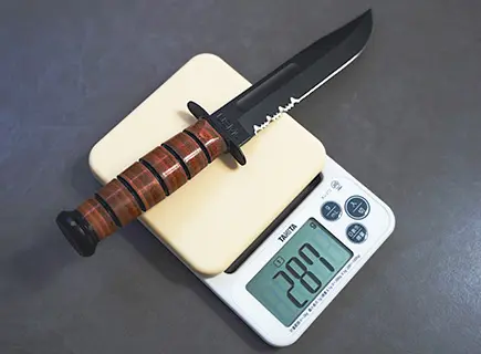 KA-BAR1218は完全なフルタングではなくナロータングだし、2万円台の高級ナイフでしたが、革ケースも含めたデザイン性と第二次世界大戦中に米軍が採用した実績から、購入を決めました。