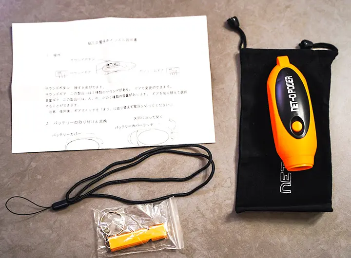 同様の商品として「熊よけホーン」があります(釣具屋でよく見かける商品)。他の商品を貶めるようなことは書きたくないのですが、正直に言って渓流釣りで使うには熊よけホーンは音量が小さいです。熊よけホーンは最大110db、NET-O電子ホイッスルは120db。10dbの差はこんなに大きいの?!と感じるほど、NET-O電子ホイッスルとの音量の差を感じましたし、改めてNET-O電子ホイッスルの爆音はすごい!と思いました。