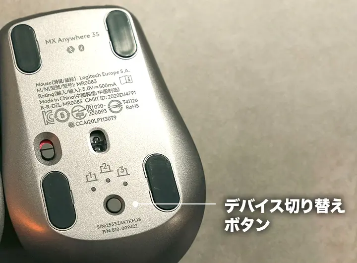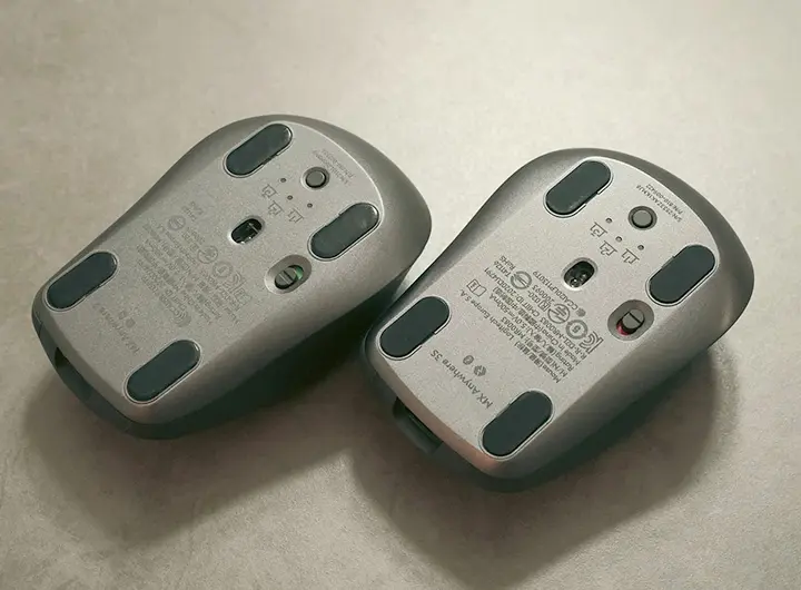 MX ANYWHERE3(MX1700BGR)と、3S(MX1800GR)の違いを説明します。見た目は見分けがつかないほど同じです。マウス裏の印字が3Sの方が濃くなり読みやすくなった程度のようです。