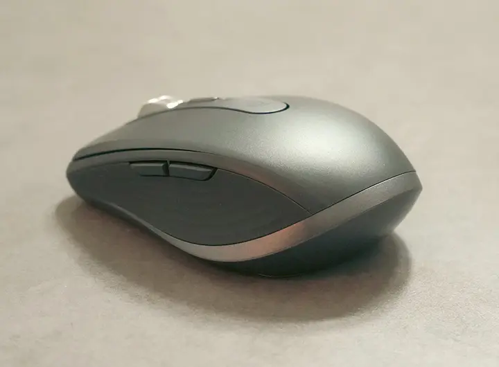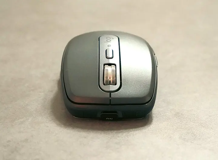ワイヤレス接続でティルト機能付き、高見えする質感で価格も5,000円前後と考えると、お値段以上のクオリティは感じます。ホイールの操作性とデザインに関しては満足するマウスでした。ただし、MX ANYWHEREと比べてしまうと…。