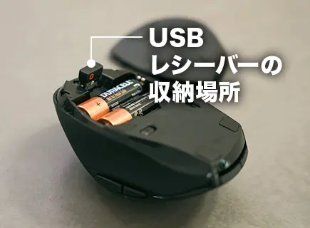 狭い作業エリアだと操作に難あり - デバイス接続がUSBレシーバー接続