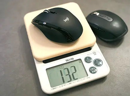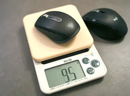 MX ANYWHERE3Sの最大のメリットは軽さとコンパクトさ。MX ANYWHEREの快適性を知ると、他のモバイルマウスでは満足できなくなります。重量は99gと記載されていますが、実測値は95gでした。一日中使っていても手が疲れません。