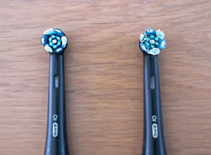 左が新品。右が2ヶ月使用後。ブラシが毛羽だったら交換時期