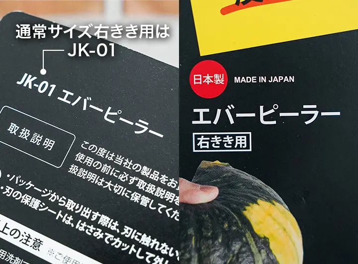飯田屋 エバーピーラーは右きき用・左きき用 2種類のラインナップです。さらにミニサイズもあり、通常サイズ同様にミニも右きき用・左きき用があります。