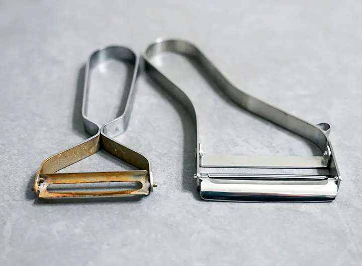 エバーピーラーをはじめて使ったときは驚きました。力は本当に不要で、野菜の表面を軽く撫でるだけで、ツルッと綺麗に皮をむけます。今まではずいぶん昔に買った錆びた100均のピーラーを使っていたので、その差に驚愕。これがプロ仕様の切れ味か!と感動しました。